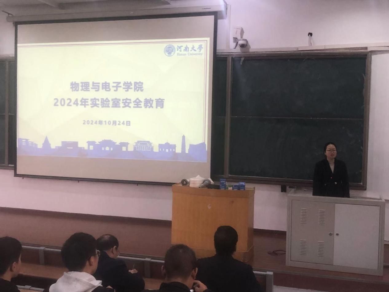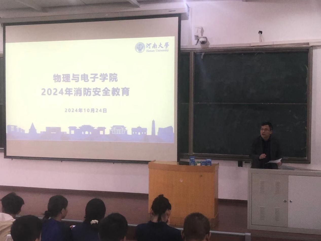 2024年10月24日下午,bellbet贝博艾弗森官方网站邀请开封城乡一体化示范区消防救援大队宣传干事李楠、学院贺宇路老师,在金明综合楼2306教室为学院2024级本科新生分别开展消防安全教育和实验室安全教育,执行院长李国强主持本次安全教育活动。