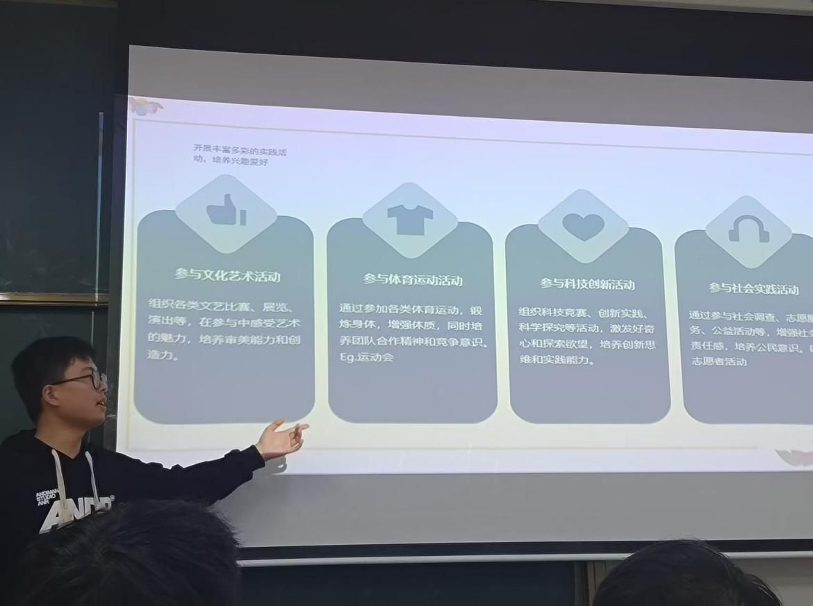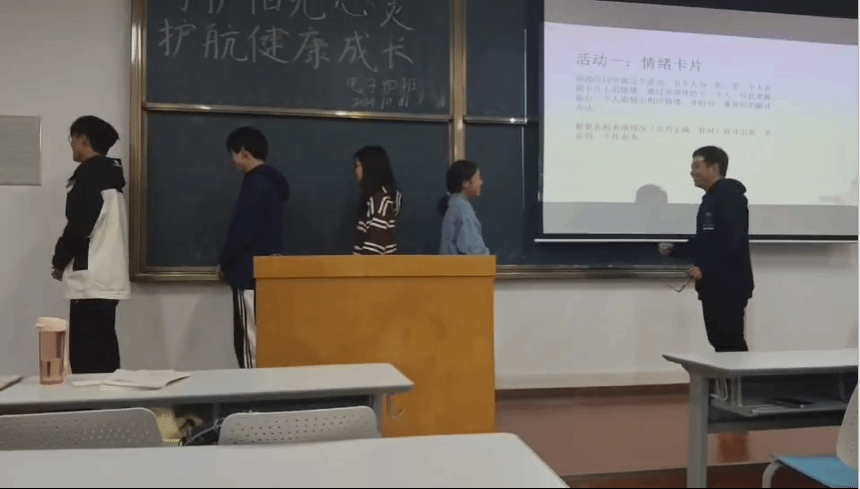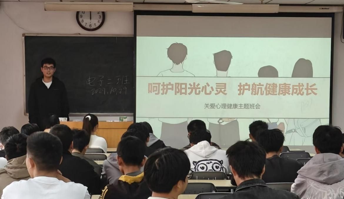 活动中,各班主持人简要介绍班会主题及目的,强调心理健康的重要性。各班心理委员以心理健康知识普及、趣味游戏、观看心理健康教育短视频等方式,讲述了有关心理健康现状、可诱发心理问题的因素,以及大学生心理通常表现在生活、人际交往、学业、恋爱等方面的问题,教给大家一些疏导排解心理压力的方法。鼓励同学们关注自身心理健康,积极面对生活和学习中的挑战。