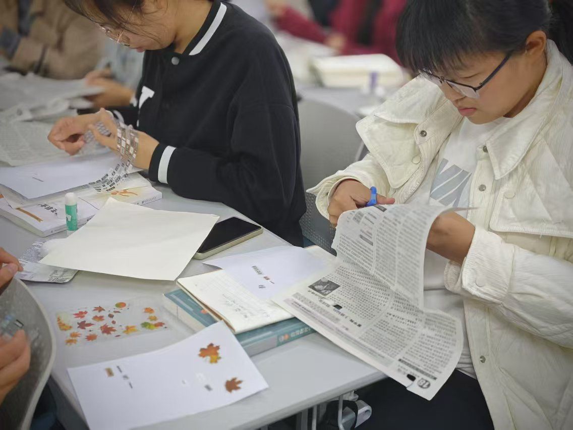 在趣味游戏环节赞美接龙活动中,同学们从羞涩腼腆到大胆热烈,不断发掘到他人的闪光点,也不断意识到自己的闪光点;在拼贴诗活动中,同学们利用杂志、报纸、贴纸等材料装饰作品,不仅锻炼了同学们的创造力和团队协作能力,也让他们在创作中体验到了表达自我的乐趣。