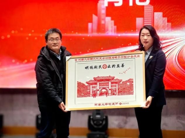 新任会长管保安作表态发言。他表达了对母校的感恩之情和对分会未来发展的坚定信心,表示将努力打造一个团结互助、富有凝聚力的校友团队,积极服务校友、服务母校、服务社会。