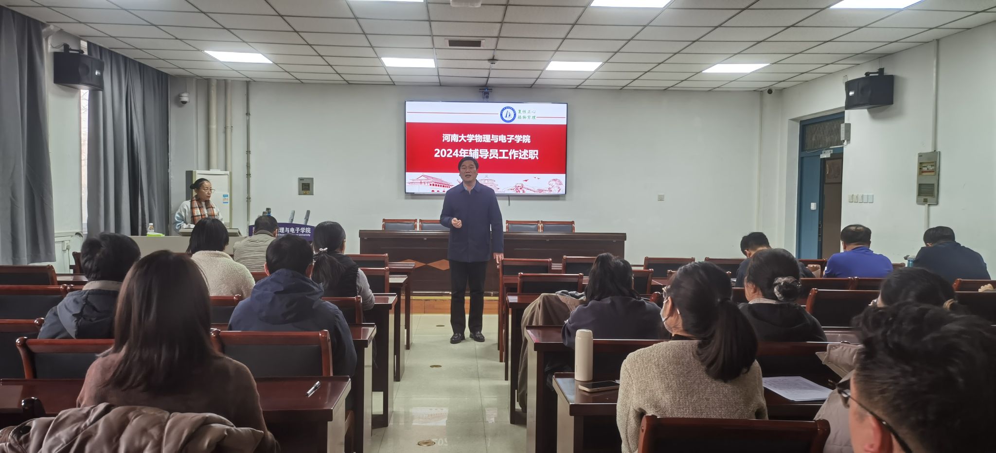 为进一步落实立德树人根本任务,切实加强辅导员队伍建设,不断激发辅导员工作热情,2025年1月3日,2024年度辅导员述职评议会在学院A313会议室召开。学院党委书记张慧、副书记刘寒冰、副院长魏高明、教师代表以及全体辅导员参加了此次大会,会议由党委副书记刘寒冰主持。