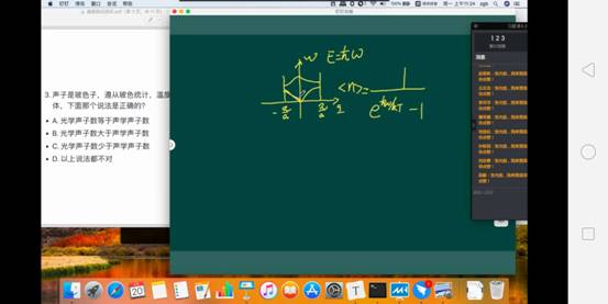 当然了,为了更高效的在网上学习,老师们同样也绞尽脑汁,其中固体物理学老师张光彪老师,为了让我们更好地掌握知识,还设置了讨论课和习题课,专门解答同学们上课中的问题,比如,声子那一小节(图二)。为了跟线下上课一样,老师还准备了白板作为课堂上的“黑板”,如果有需要推导的公式,他就会一点一点的给我们推导,若果我们没有搞懂,他就会在给我们推一遍,我尤其印象深刻的是在讲近自由电子近似的时候,公式推导非常繁琐,头一天我花了好长时间也没有搞清楚,第二天,我就在课上请教了老师,老师很耐心的又给我们讲了一遍,虽然这个过程中我们花费了许多时间,但同时我们也收获了许多(图三)。