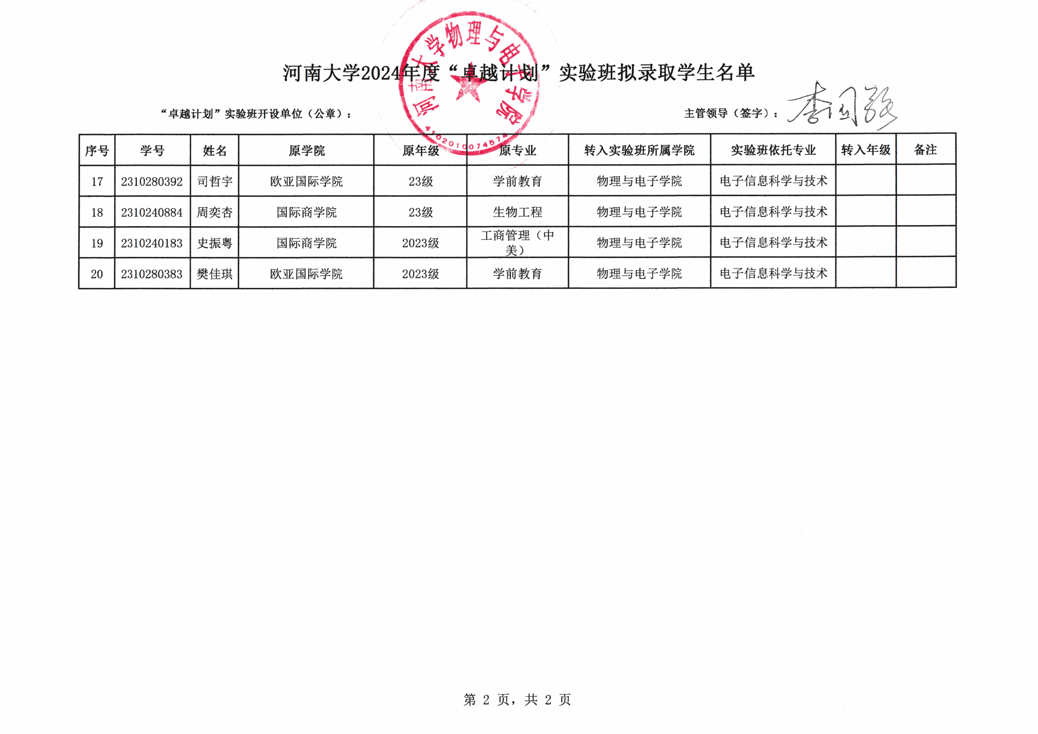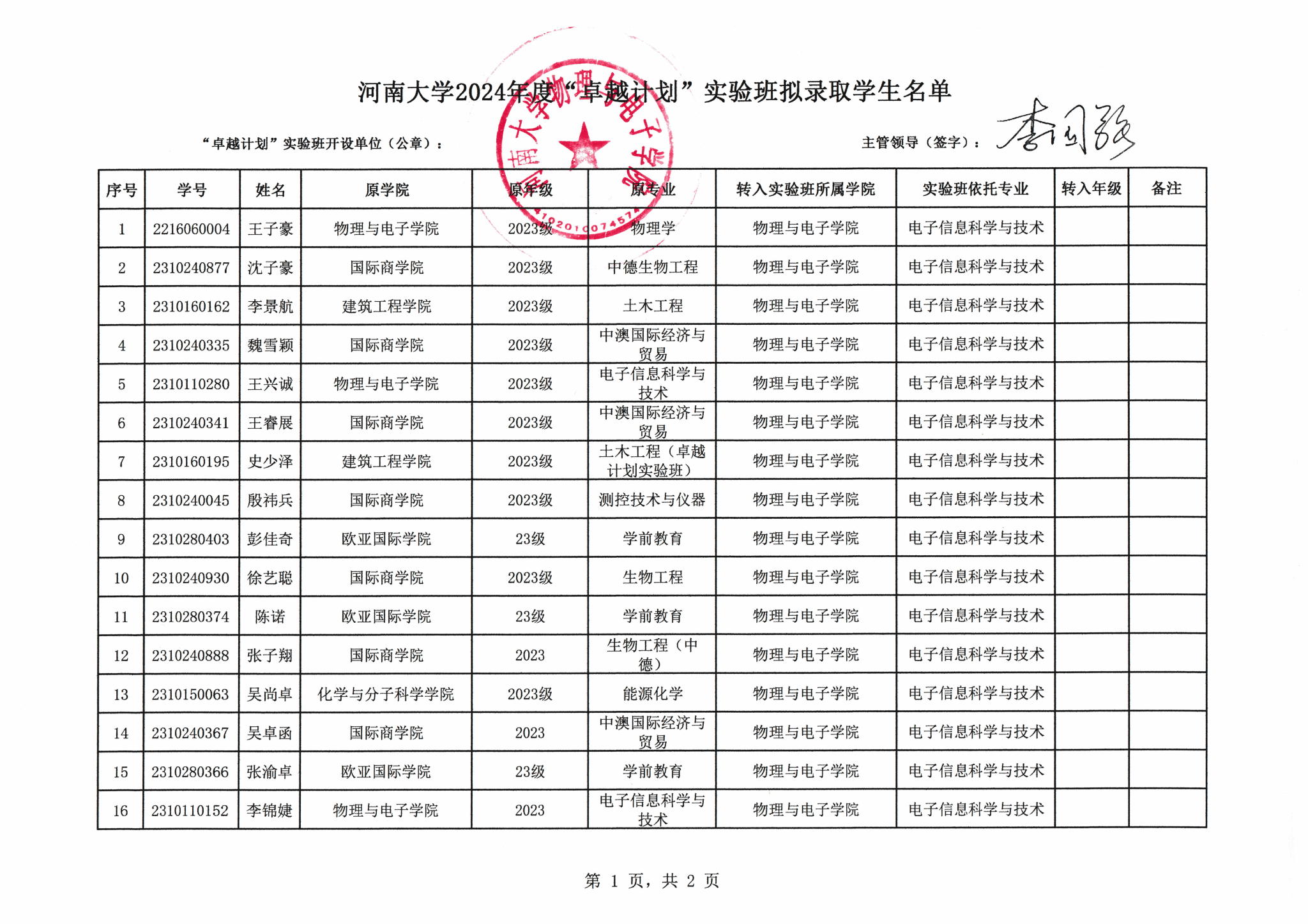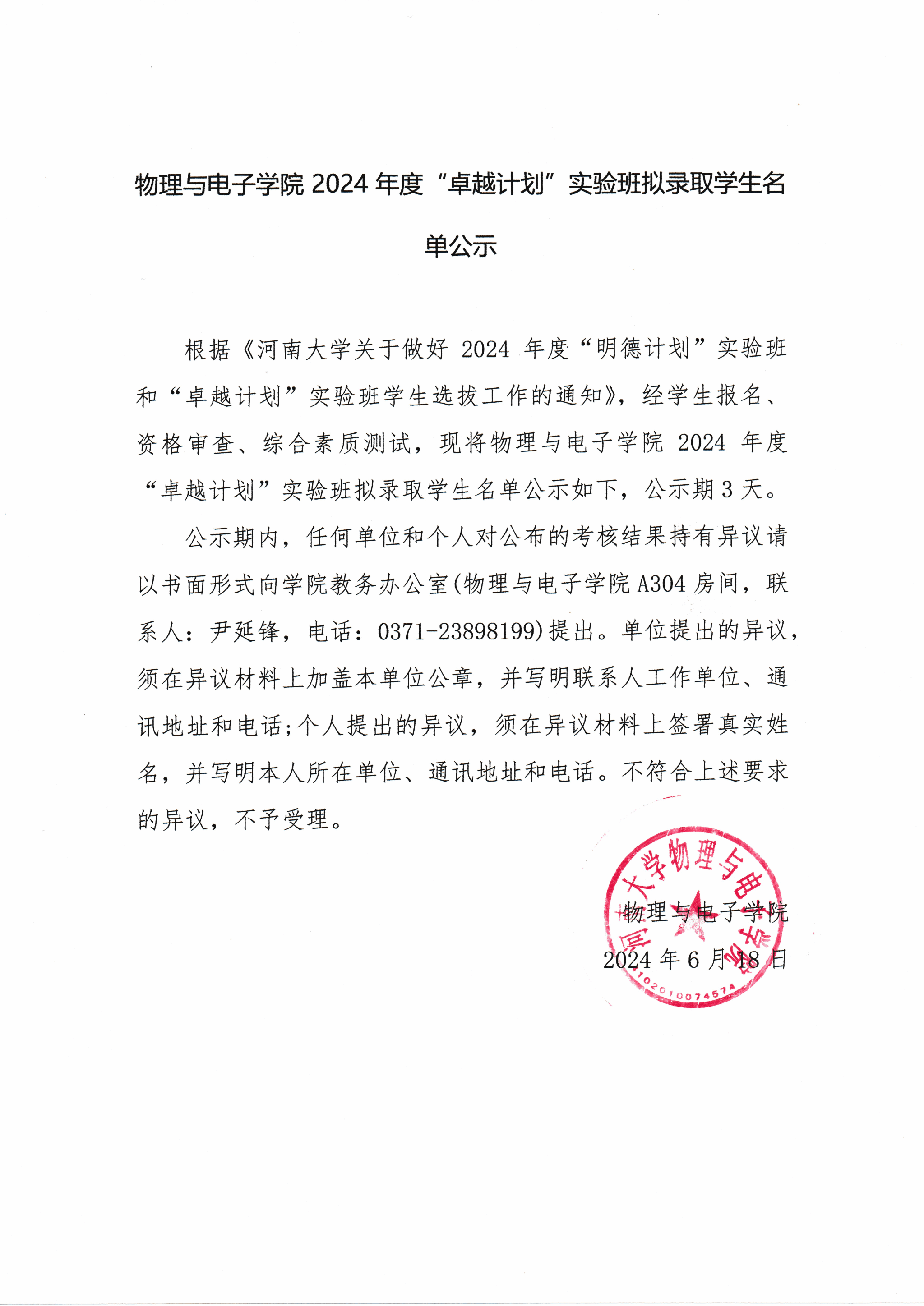 bellbet贝博艾弗森官方网站 2024 年度“卓越计划”实验班拟录取学生名单公示