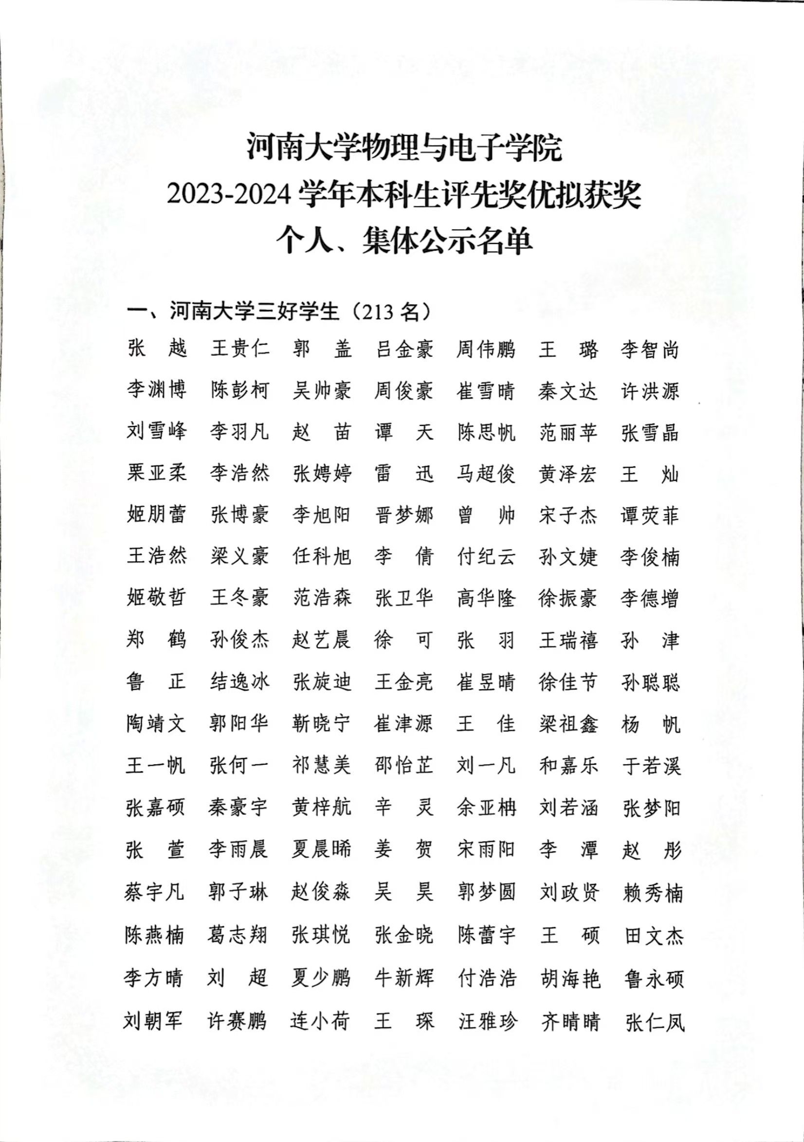 bellbet贝博艾弗森官方网站2023-2024学年本科生评先奖优拟获奖个人、集体公示名单
